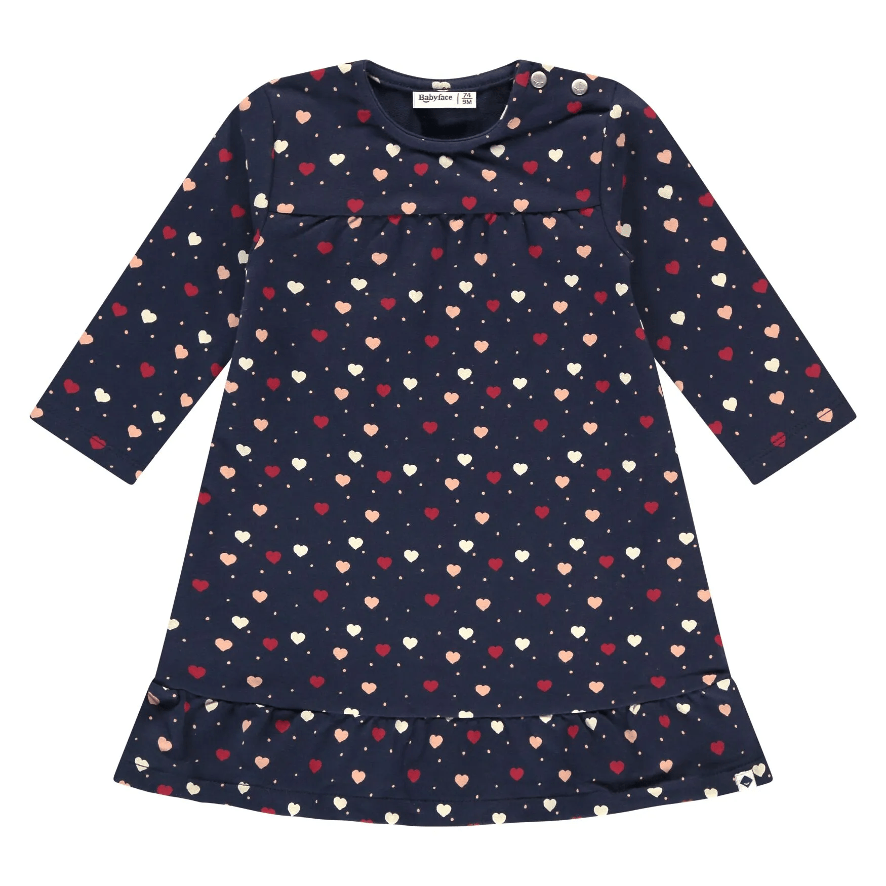 Βρεφικό φόρεμα φούτερ all over καρδιές σε μπλε χρώμα.