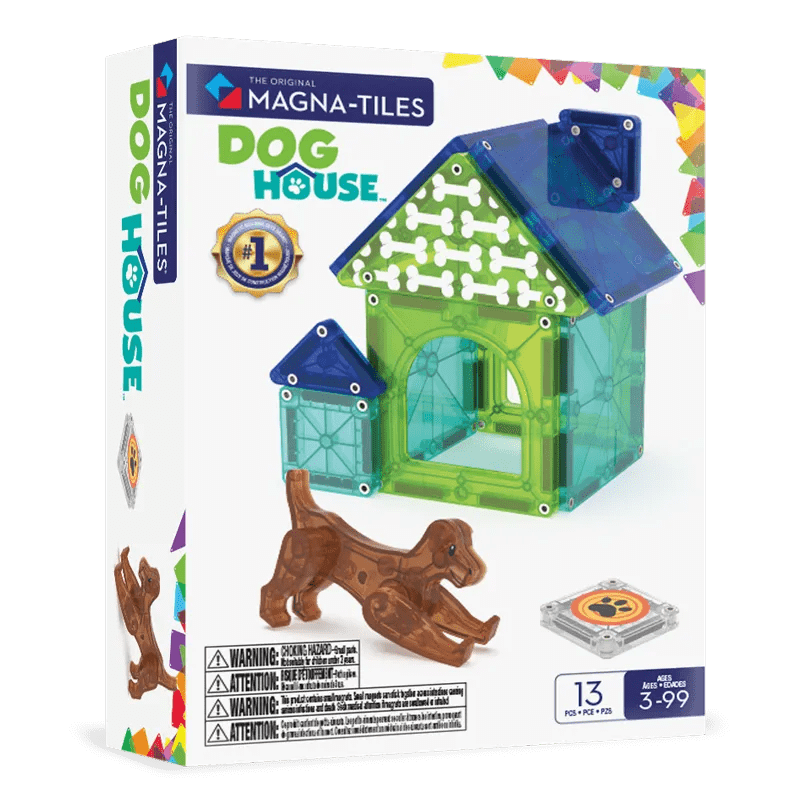 Το Dog House 13-Piece Set της MAGNA-TILES προσκαλεί τα παιδιά να δημιουργήσουν το δικό τους σπιτάκι για έναν αξιαγάπητο σκύλο, ενισχύοντας τη φαντασία, τη φροντίδα ζώων και τη δημιουργική κατασκευή!