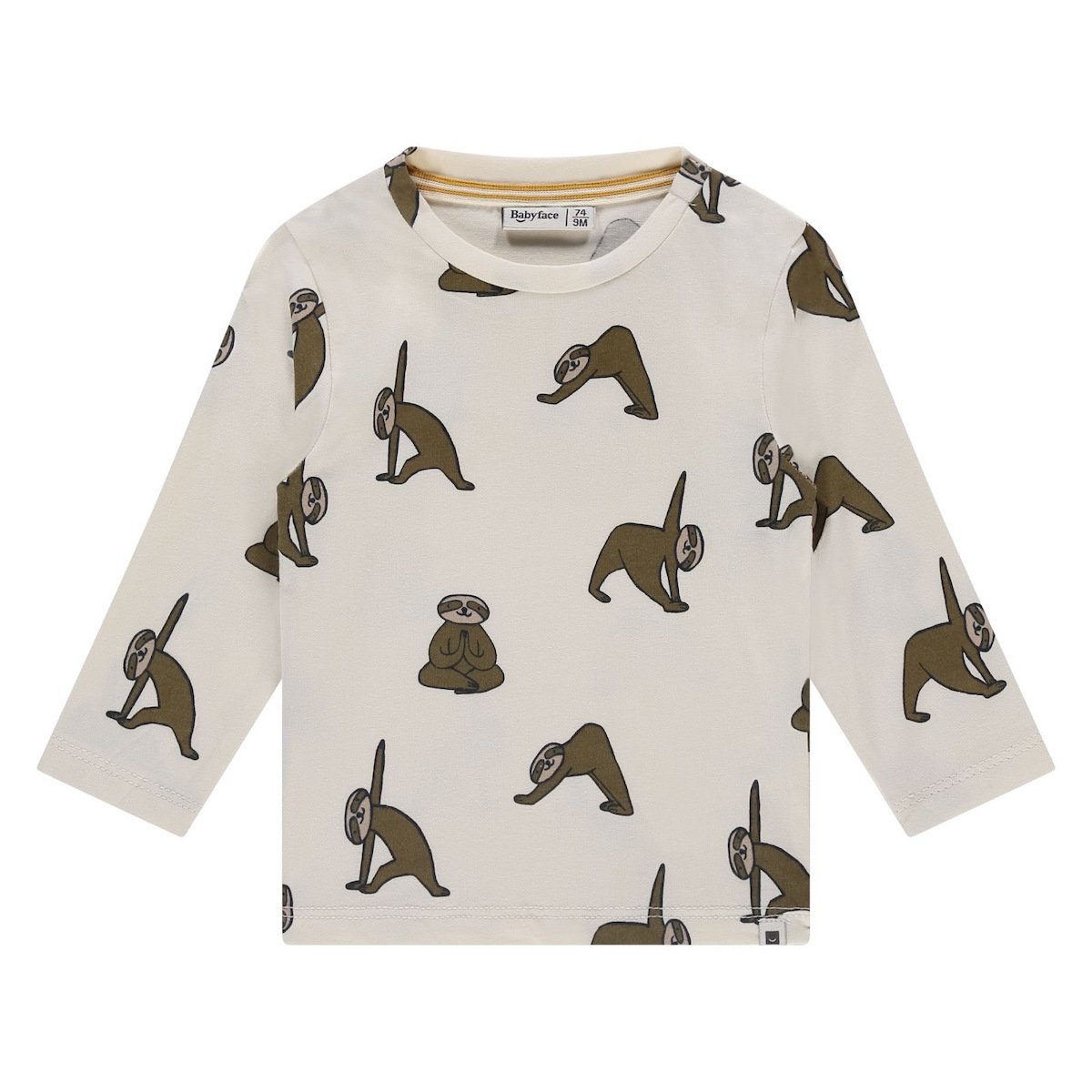 Βρεφικό σετ που αποτελείται από λεπτή μπλούζα σε εκρού χρώμα με all over βραδύποδες και μαλακό cargo παντελόνι σε λαδί απόχρωση.